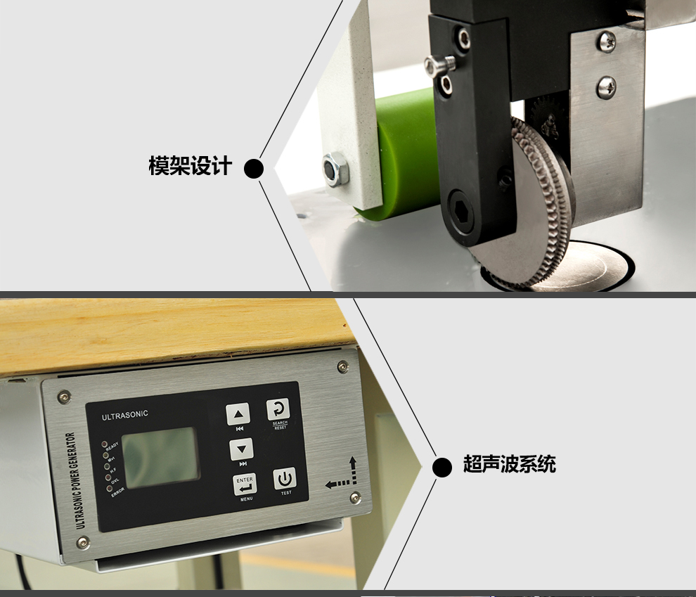 1.超聲波花邊機(jī)花輪焊頭采用合金鋼材料制成,并經(jīng)特種熱處理工藝。