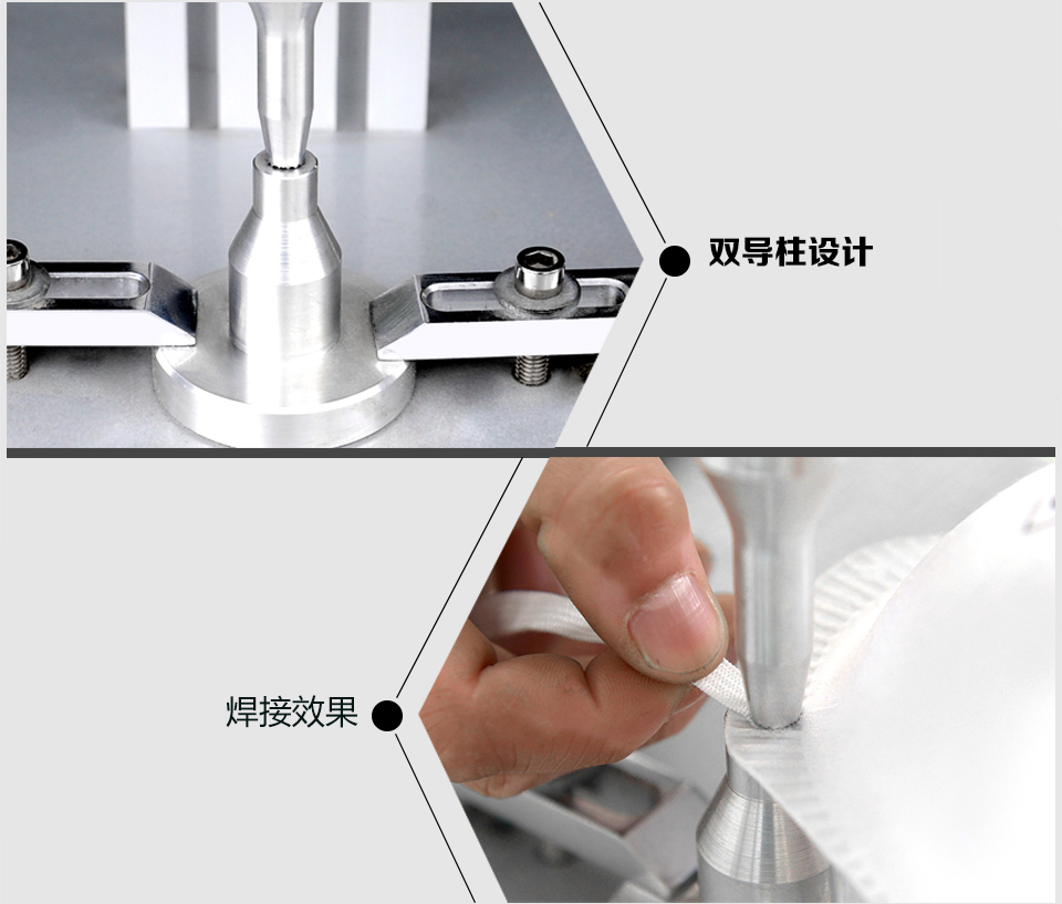 2.可用適用于拉鏈定位,拉鏈上下止,肩帶點焊,肩帶打棗,織帶打棗,超聲波打棗,橡筋帶焊接,織帶焊接,拉鏈燙尾,口罩耳帶點焊的焊接。