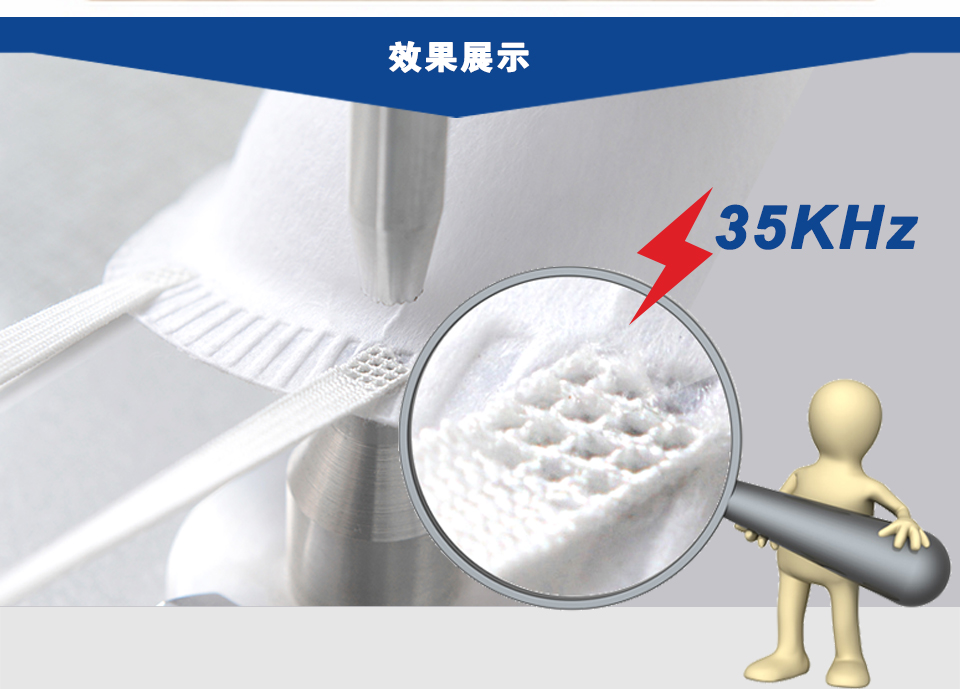 1.超聲波點焊機采用NTK換能器,輸出穩定,性能可靠,整機設計小巧,操作方便,主要適用于拉鏈定位,拉鏈上下止,肩帶點焊,肩帶打棗,織帶打棗,超聲波打棗,橡筋帶焊接,織帶焊接,拉鏈燙尾,口罩耳帶點焊的焊接點焊而設計,具有生產效率高、操作簡單、質量穩定等;
